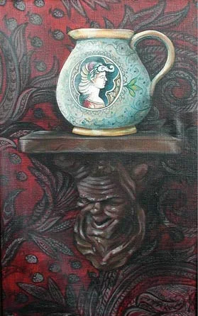 Shrine to the Druid god The Daghdha, all artwork (painted or ceramic) was made by Ardis DeFreece, 2014