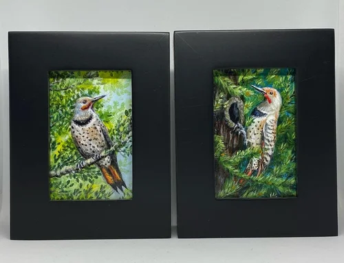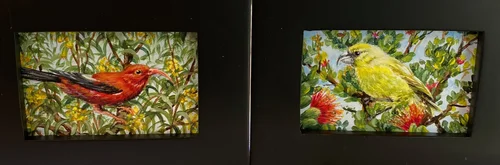 Native birds in native trees on Maui. 2”x3” 2021, SOLD
