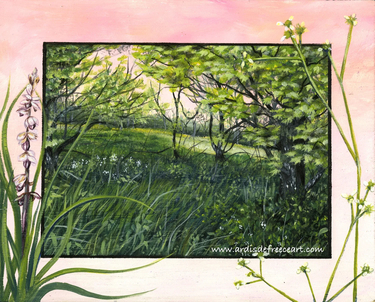 Camassia Quamash & Rosy Plectritus, Oil/acrylic on Panel, 8” x 10,” 2019